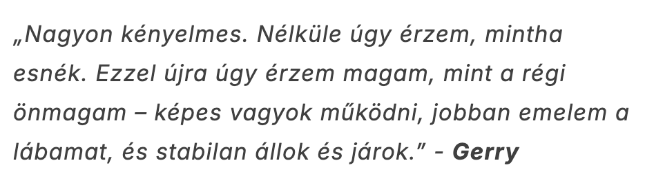 Ez a termék pontosan azt tette, amit ígért, és nagyon könnyen használható. Annyira jó érzés újra járni és futni. Most már nem nézek ki idiótának, amikor a folyosón vagy a boltban sántikálok.